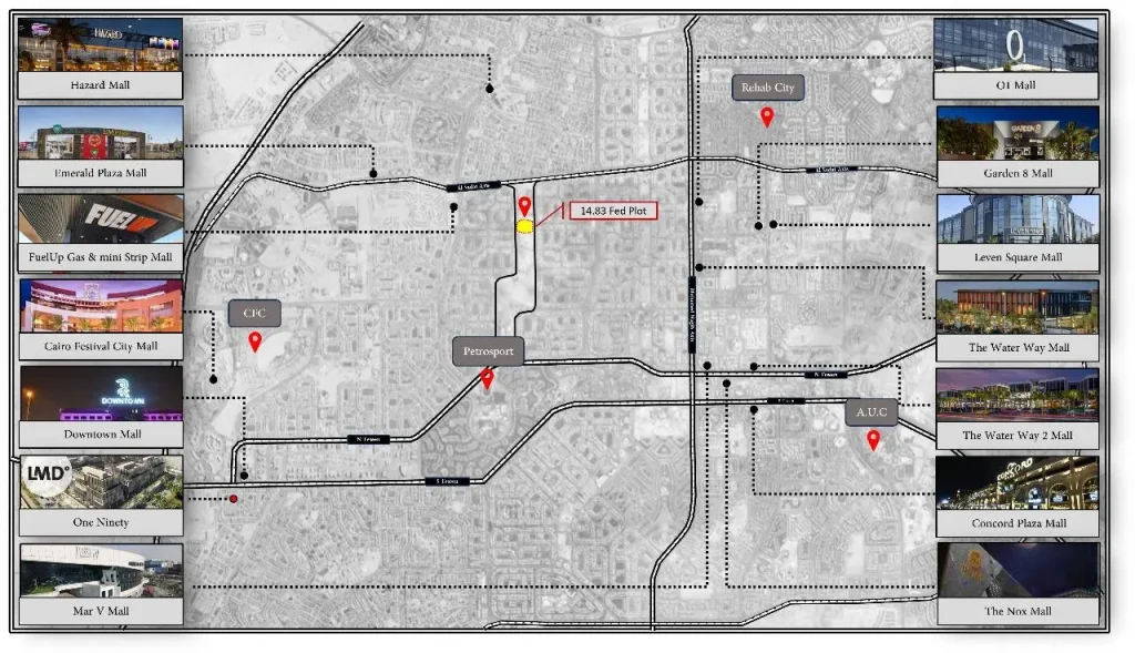 مجموعة متنوعة من الخدمات الأساسية والمعالم الرئيسية في القاهرة الجديدة. يمنح هذا الموقع المتميز المجمع ميزة تنافسية كبيرة، مما يجعله خيارًا مثاليًا لمن يبحثون عن الراحة والرفاهية في منطقة راقية.